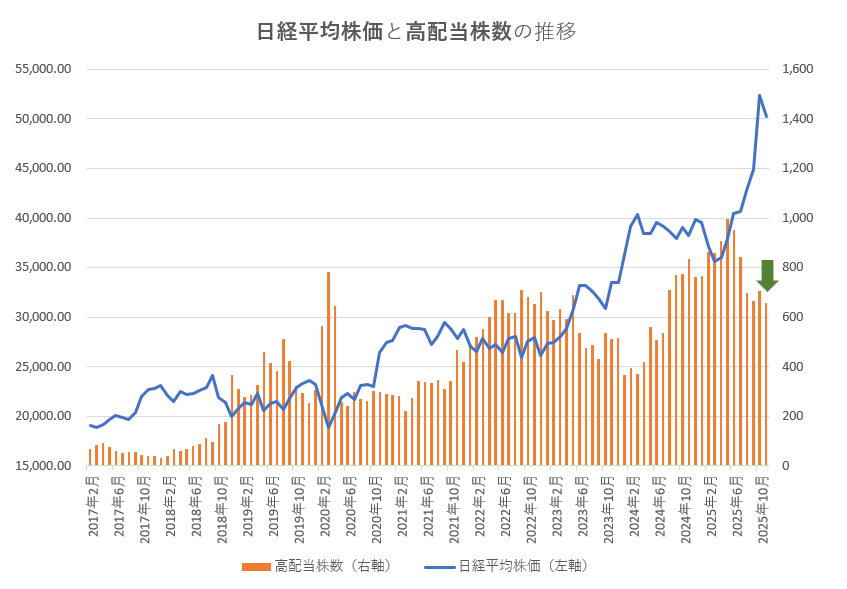 - 日経平均:50,253.91円(前月比-2,157.43円)